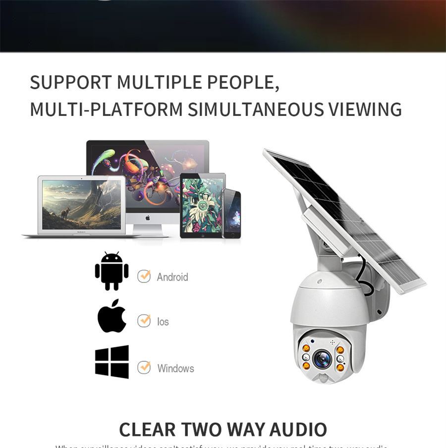 3. 1080P Full HD: esta cámara solar PTZ resistente al agua de 2MP HD tiene alta resolución de 1920 * 1080P (lente HD de 2 megapíxeles), imagen Full HD para el día y la noche, más detalles en la imagen. El sensor de imagen CMOS incorporado, los algoritmos avanzados y los chips mejorarán el campo de visión y cubrirán un rango más amplio. Puede disfrutar de una visión más clara y grabaciones de video que la cámara de seguridad 720P.